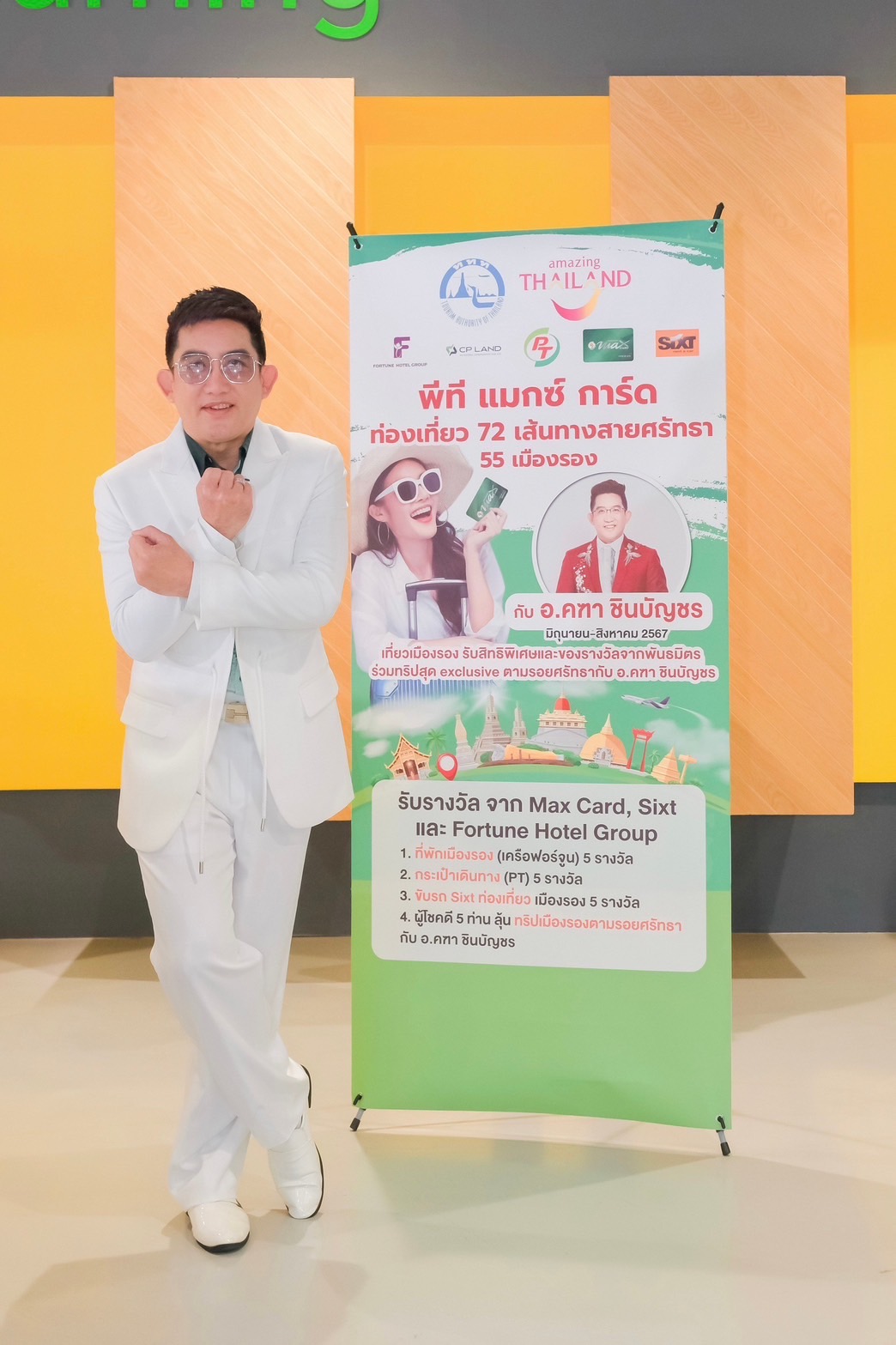 วันที่ 12 มิถุนายน 2567 การท่องเที่ยวแห่งประเทศไทย (ททท.) ร่วมกับ พีที แมกซ์ การ์ด โรงแรมในเครือฟอร์จูน และซิกท์ เร้น อะ คาร์ พร้อมด้วย อ.คฑา ชินบัญชร เปิดตัวโครงการ พีที แม็กซ์ การ์ด ท่องเที่ยว 72 เส้นทางสายศรัทธา 55 เมืองรอง ภายใต้แนวคิด ชวนคนไทยเที่ยวตามรอยเส้นทางสายศรัทธาที่ทรงคุณค่าในเมืองรอง โดยมีวัตถุประสงค์เพื่อส่งเสริมการตลาดการท่องเที่ยว เมืองรอง เพิ่มจำนวนนักท่องเที่ยวและเพิ่มรายได้จากการท่องเที่ยวภายในประเทศกลับสู่เมืองรอง รวมถึงเพื่ออนุรักษ์ศิลปะ วัฒนธรรม คตินิยม ให้คงอยู่เป็นสมบัติของท้องถิ่นและวิถีชุมชน พัฒนาวัฒนธรรมให้เกิดมูลค่าทางเศรษฐกิจและสังคมและที่สำคัญคือเพื่อกระตุ้นความคึกคักให้เมืองรองและการพัฒนาคุณภาพและบริการให้ได้มาตรฐานเพื่อรองรับนักท่องเที่ยว โดยมีนางสาวสมฤดี จิตรจง รองผู้ว่าการด้านตลาดในประเทศ (ททท.) อ.คฑา ชินบัญชร พรีเซ็นเตอร์การท่องเที่ยวแห่งประเทศไทย นายพร้อมศักดิ์ จรัญญากรณ์ กรรมการผู้จัดการบริษัท แมกซ์ โซลูชัน เซอร์วิส จำกัด บริษัทในเครือพีทีจี นายไพสิฐ แก่นจันทน์ ผู้อำนวยการบริหารธุรกิจโรงแรม บริษัท ซี.พี.แลนด์ จำกัด (มหาชน) และนายภูมน สมดี ผู้จัดการทั่วไป ซิกท์ เร้น อะ คาร์ ให้เกียรติร่วมงาน ณ สถานีบริการน้ำมัน Max Park Salaya เขตทวีวัฒนา กรุงเทพมหานคร