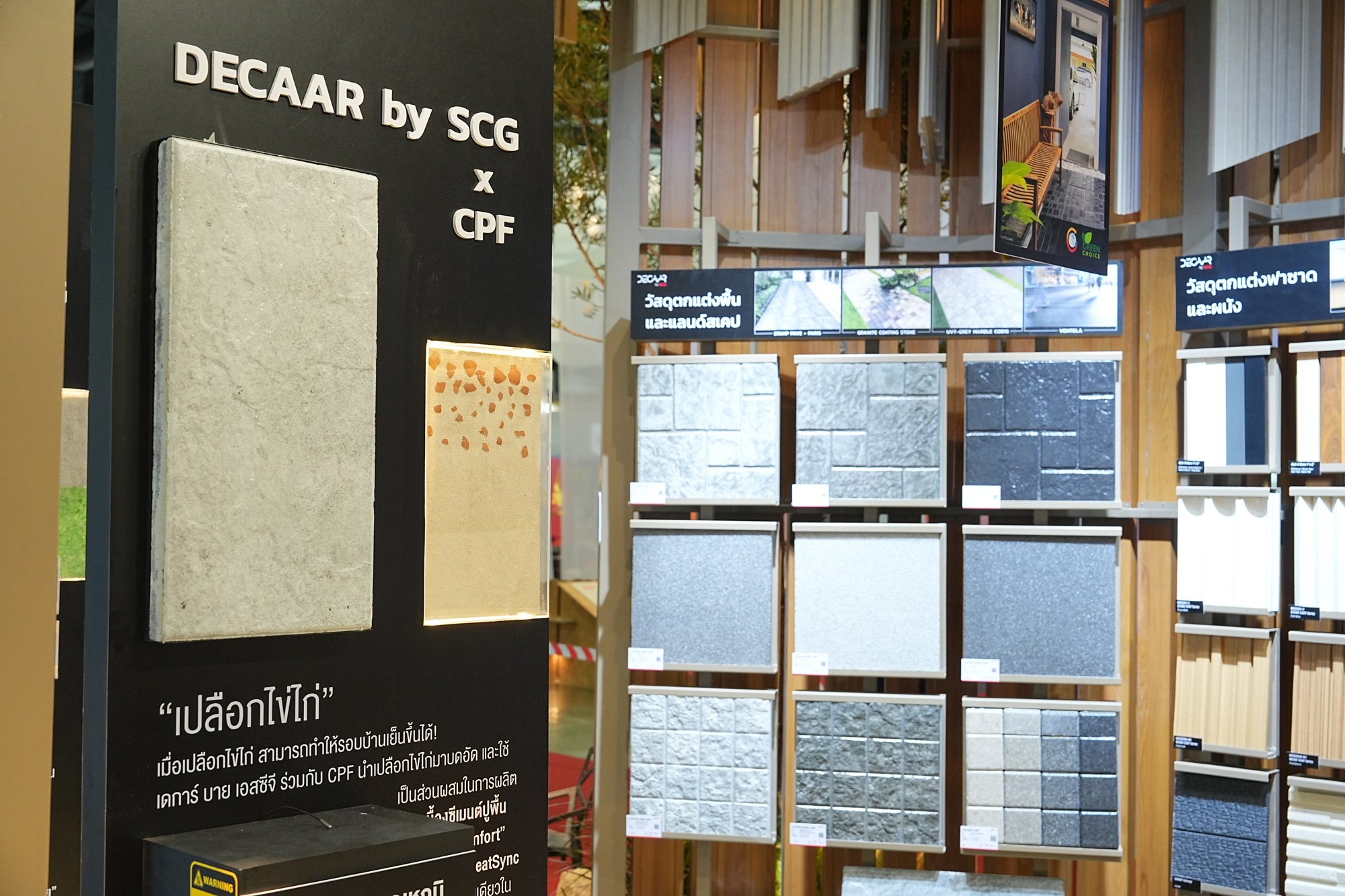มิติใหม่ของวัสดุตกแต่งจาก “วัสดุเหลือใช้” นำมาสร้างให้เกิด “คุณค่า” ภายใต้แนวคิด Turn Waste to Value โดยร่วมมือกับองค์กรชั้นนำ อาทิ ปตท., แสนสิริ, HomePro, CPF และบริษัทออกแบบ A49 ในการนำเอาเศษวัสดุจากอุตสาหกรรมและชุมชนต่างๆ มาต่อยอดและผลิตเป็นนวัตกรรมวัสดุตกแต่งภูมิทัศน์ภายนอก (Outdoor living Solution และฟาซาด (Facade Solution) ดีไซน์สวย แข็งแรง ทนทาน และรักษ์โลก อาทิ กระเบื้องคอนกรีตปูพื้น รุ่นคอมฟอร์ท ที่มีส่วนผสมจากเปลือกไข่ไก่บดอัดและวัสดุ รีไซเคิลจากโรงงานจากเอสซีจี พร้อมด้วยเทคโนโลยี HeatSync ช่วยทำให้ระบายความร้อนและดูดซับความร้อนได้ดีกว่ากระเบื้องทั่วไป
