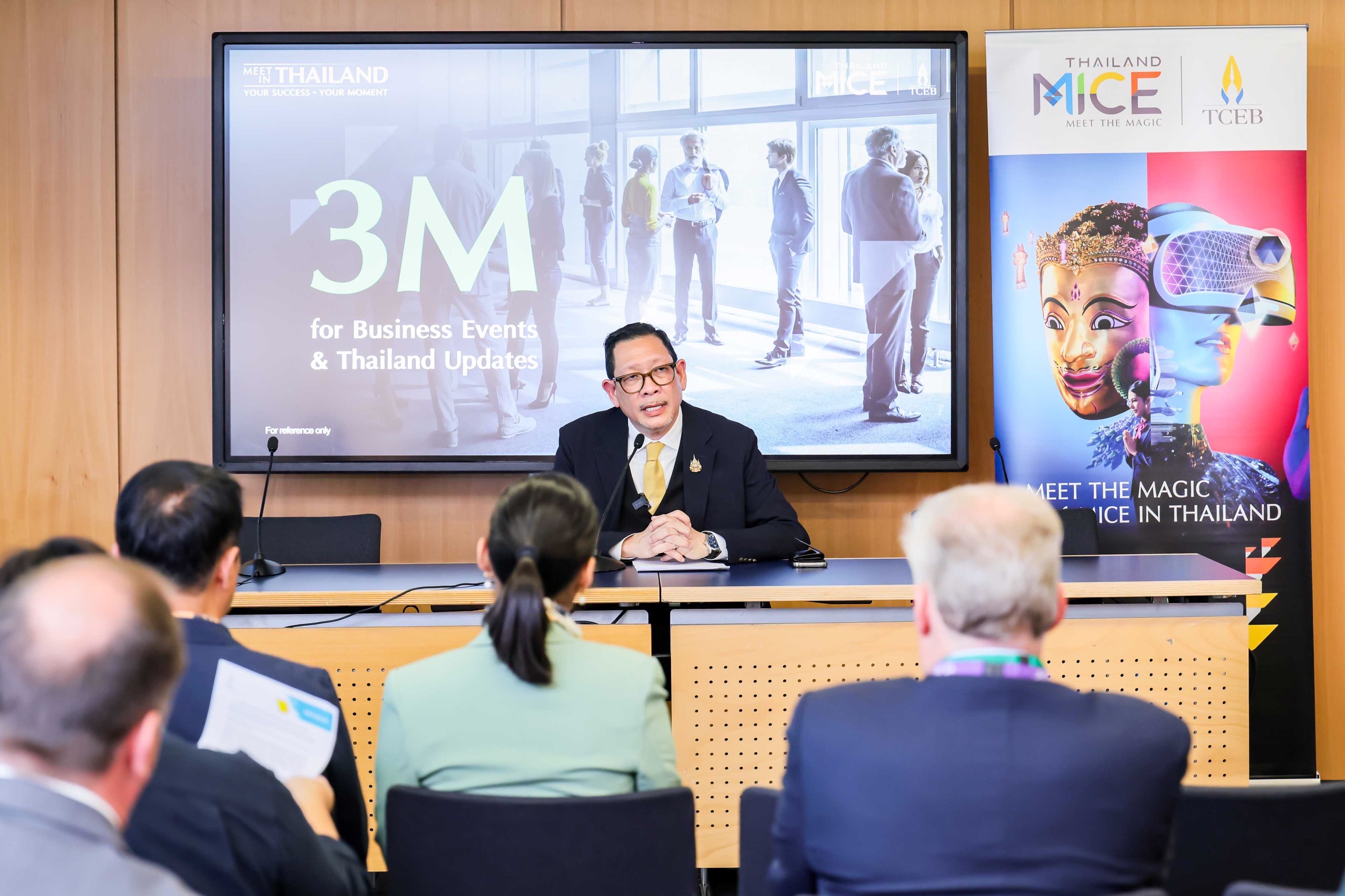 ทีเส็บ ยังได้นำเสนอสถานการณ์สำคัญ ๆ ที่เป็นปัจจุบันเกี่ยวกับอุตสาหกรรมไมซ์ไทย ประกอบด้วย อีเวนต์ 15 งานจากสมาคมและบริษัทในยุโรปและสหราชอาณาจักรที่มีกำหนดจัดในประเทศไทยในปีนี้และปีหน้า ศูนย์การประชุมและนิทรรศการหลักทั้ง 8 แห่งในกรุงเทพฯ และปริมณฑลที่เชื่อมต่อโดยตรงกับรถไฟฟ้า BTS และรถไฟฟ้าใต้ดิน MRT ได้ภายในเดือนพฤษภาคมปีนี้ แอร์ฟรานซ์จะเริ่มเที่ยวบินตรงระหว่างปารีสและภูเก็ตในเดือนพฤศจิกายน 2568 และโครงการสนับสนุนงานอีเวนต์ธุรกิจและเทศกาลของทีเส็บ
