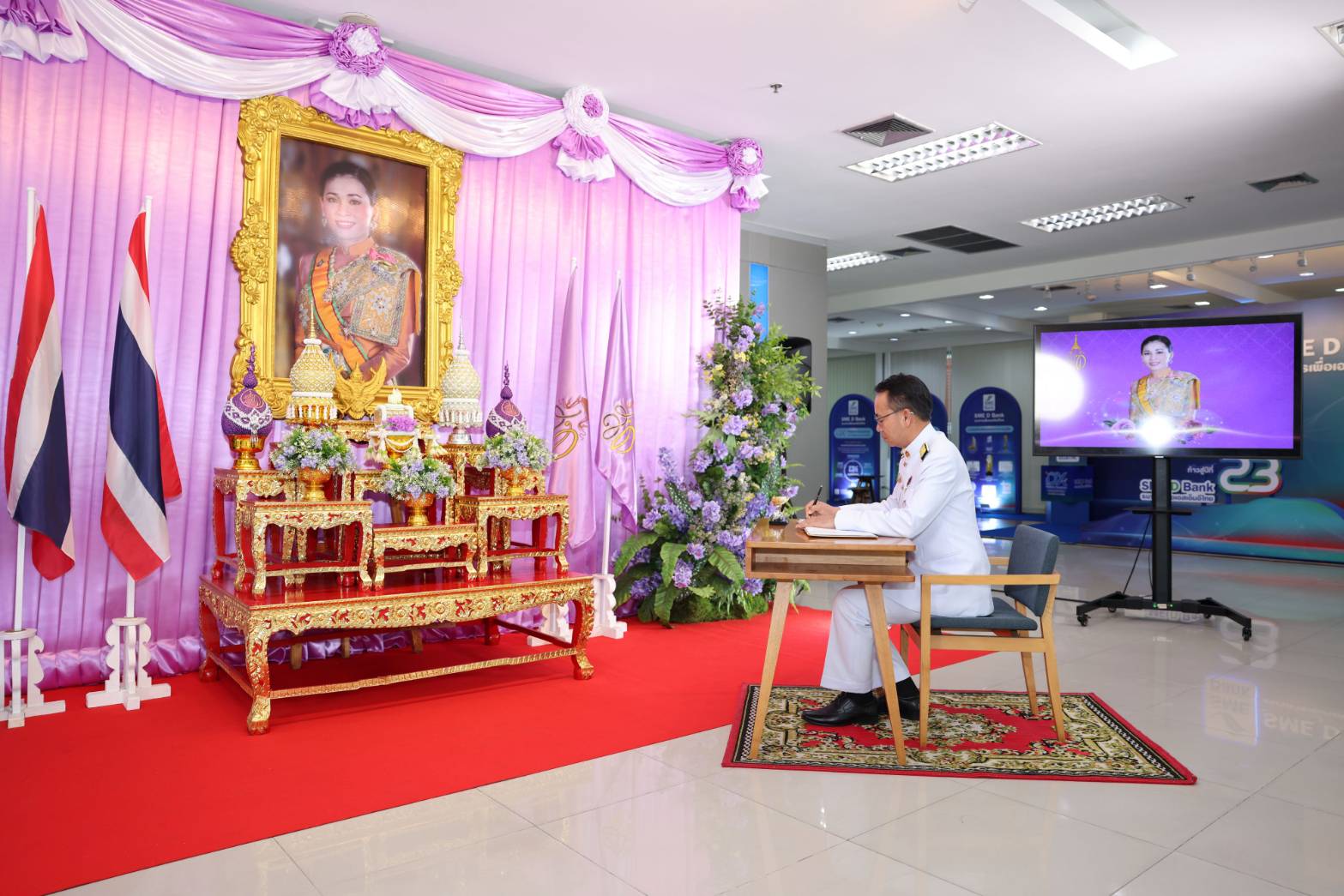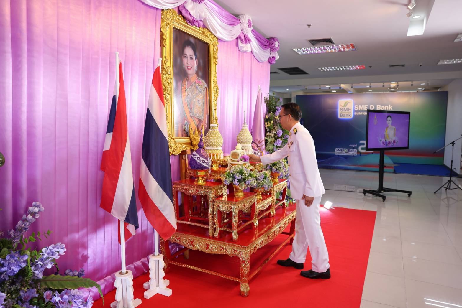 ธนาคารพัฒนาวิสาหกิจขนาดกลางและขนาดย่อมแห่งประเทศไทย (ธพว.) หรือ SME D Bank โดย นายพิชิต มิทราวงศ์ กรรมการผู้จัดการ พร้อมด้วยคณะผู้บริหาร ร่วมพิธีถวายพระพรชัยมงคล พร้อมลงนามถวายพระพร สมเด็จพระนางเจ้าสุทิดา พัชรสุธาพิมลลักษณ พระบรมราชินี เพื่อแสดงความจงรักภักดี เนื่องในโอกาสวันเฉลิมพระชนมพรรษา 3 มิถุนายน 2568 ณ อาคารสำนักงานใหญ่ SME D Bank เมื่อวันที่ 28 พฤษภาคม 2568