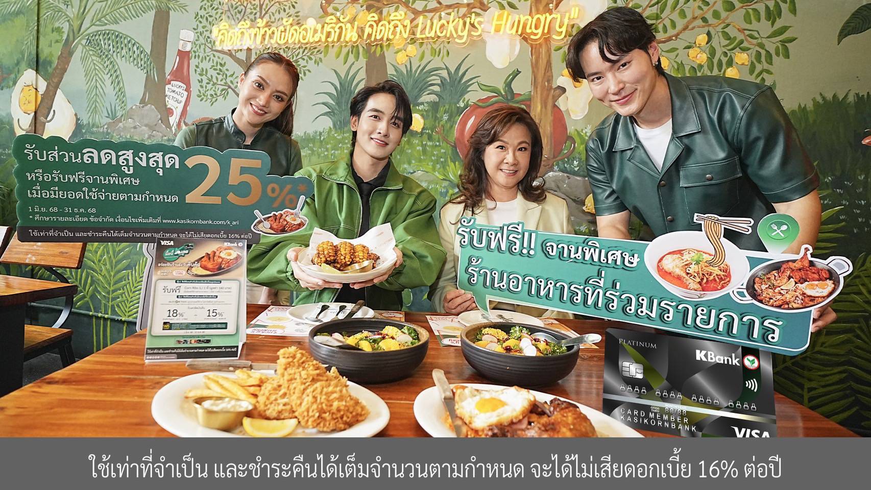- รับส่วนลดสูงสุด 25%* หรือรับฟรี!! จานพิเศษ เพียงใช้จ่ายด้วยบัตรเครดิตกสิกรไทยกับร้านอาหาร คาเฟ่ ขนม ที่ร่วมรายการ