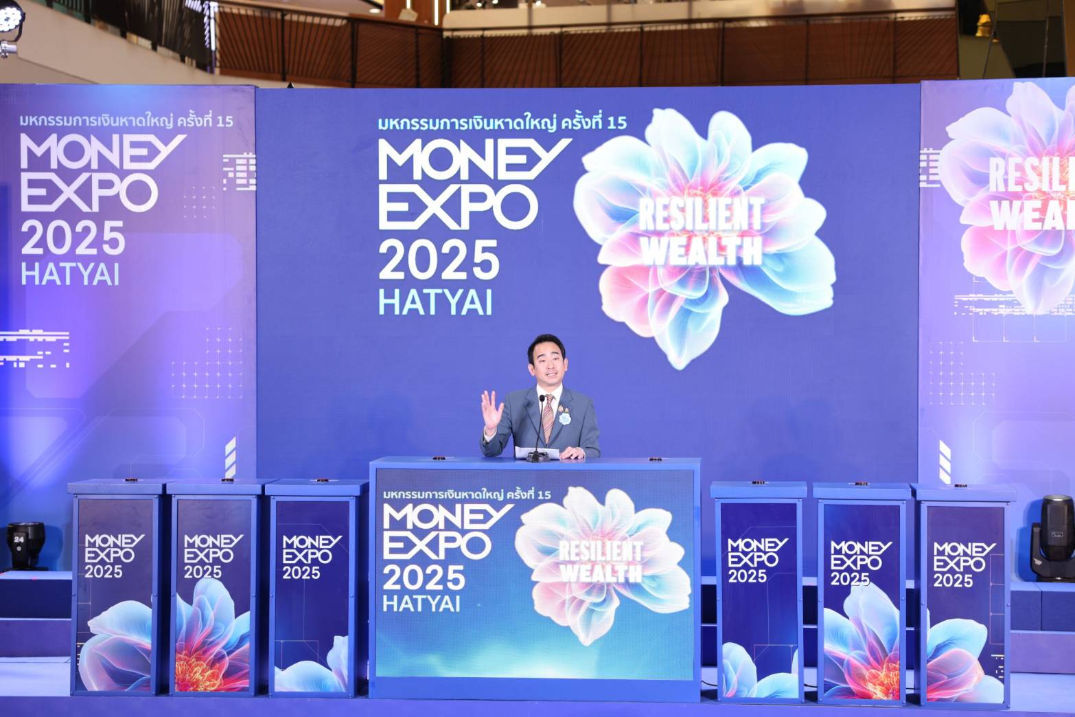 นายเผ่าภูมิ โรจนสกุล รัฐมนตรีช่วยว่าการกระทรวงการคลัง นายสันติ วิริยะรังสฤษฎ์ ประธานจัดงานมหกรรมการเงิน MONEY EXPO และนางสาวภาคนี วิริยะรังสฤษฎ์ ประธานจัดงานร่วมงานมหกรรมการเงิน MONEY EXPO ให้เกียรติเปิดบูธพร้อมเยี่ยมชมบูธของธนาคารพัฒนาวิสาหกิจขนาดกลางและขนาดย่อมแห่งประเทศไทย (ธพว.) หรือ SME D Bank ที่ยกขบวนบริการด้านการเงินคู่การพัฒนา เข้าร่วมงาน “มหกรรมการเงินหาดใหญ่” ครั้งที่ 15 (MONEY EXPO 2025 HATYAI) ระหว่างวันที่ 4-6 กรกฎาคม 2568 ณ บูธหมายเลข F3 โดยมี นายพิชิต มิทราวงศ์ กรรมการผู้จัดการ ธนาคารพัฒนาวิสาหกิจขนาดกลางและขนาดย่อมแห่งประเทศไทย (ธพว.) หรือ SME D Bank พร้อมผู้บริหารและพนักงานธนาคาร ให้การต้อนรับ