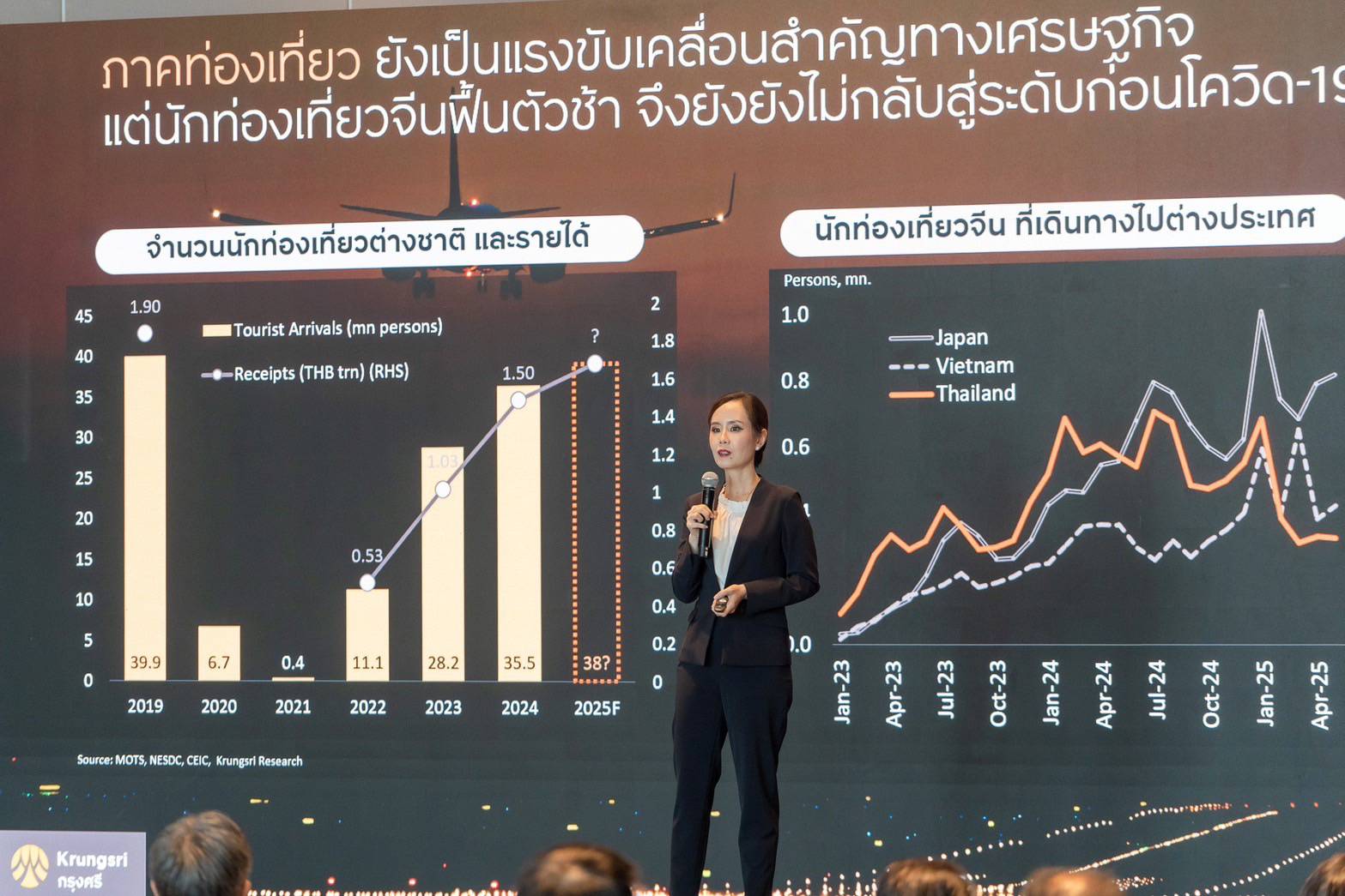 สำหรับเศรษฐกิจไทยในปี 2568 คาดว่าจะเติบโตเพียง 2.1% ต่ำกว่ากว่าศักยภาพและต่ำกว่าประเทศอื่นๆ ในอาเซียน ซึ่งหากได้รับผลกระทบจากภาษีตอบโต้ที่ 36% อาจเติบโตเพียง 1.5% อย่างไรก็ตาม ยังมีแรงสนับสนุนจากการใช้จ่ายภาครัฐฯ มาตรการกระตุ้น และการฟื้นตัวของภาคท่องเที่ยว ทั้งนี้ คาดว่ากนง. จะลดดอกเบี้ยอีก 1-2 ครั้ง