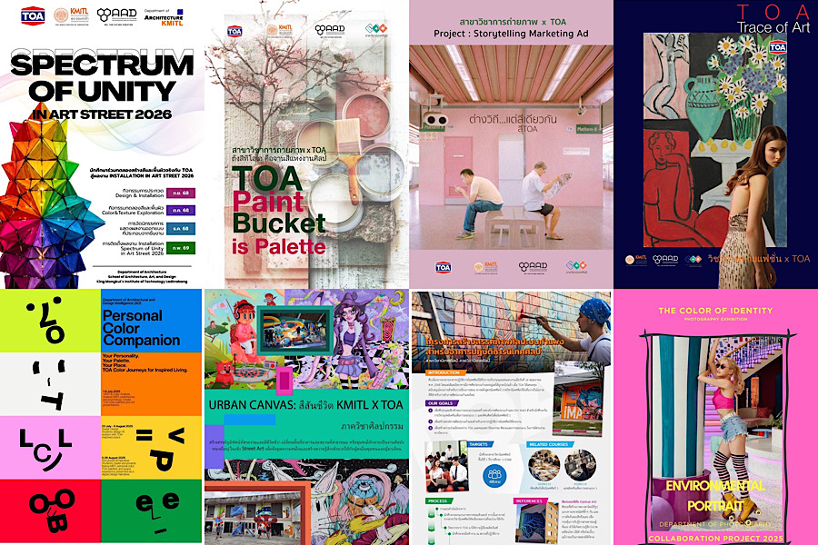 TOA พร้อมสนับสนุนองค์ความรู้ความเชี่ยวชาญเชิงลึก ทั้งด้านนวัตกรรมสีและวัสดุปกป้องพื้นผิวแบบครบวงจร ผสานกับแนวคิดการเรียนรู้เชิงปฏิบัติของคณะสถาปัตย์ฯ สู่กิจกรรมเชิงสร้างสรรค์ด้วย 8 โครงการนำร่องที่ออกแบบมาเพื่อเสริมสร้างศักยภาพให้นักศึกษาที่ตอบโจทย์การเรียนรู้ในโลกแห่งอนาคตอาทิ โครงการ TRACE OF ART บันทึกร่องรอยของศิลปะในพื้นที่จริงผ่านกระบวนการมีส่วนร่วม, โครงการสร้างสรรค์ภาพศิลปะบนกำแพงอาคารปฏิบัติการนิเทศศิลป์ ปลุกชีพพื้นที่การเรียนรู้ด้วยศิลปะ, โครงการ Paint Bucket is Palette การตีความถังสีให้กลายเป็นพื้นที่สร้างสรรค์, โครงการ Storytelling Marketing สร้างแบรนด์ให้มีชีวิตผ่านเรื่องเล่าจากสี, โครงการ SPECTRUM OF UNITY – เอกภาพแห่งความหลากหลายในงาน Art Street 2026, โครงการ “เช็ค เฉด (ที่) ใช่ หาสีประจำตัว” ค้นหาสีที่สะท้อนตัวตนผ่านกระบวนการวิเคราะห์และสร้างสรรค์ทางศิลปะ เพื่อส่งเสริมการรู้จักตนเองและการใช้สีอย่างมีอัตลักษณ์,โครงการ Environmental Portraiture Collaboration Color, Space, and Identity และโครงการ URBAN CANVAS สีสันชีวิต KMITL x TOA ปรับภูมิทัศน์หรืออัตลักษณ์สถานที่ต่างๆ ให้เกิดความสวยงามและสร้างประสบการณ์ใหม่ให้กับผู้ชมงานศิลปะ