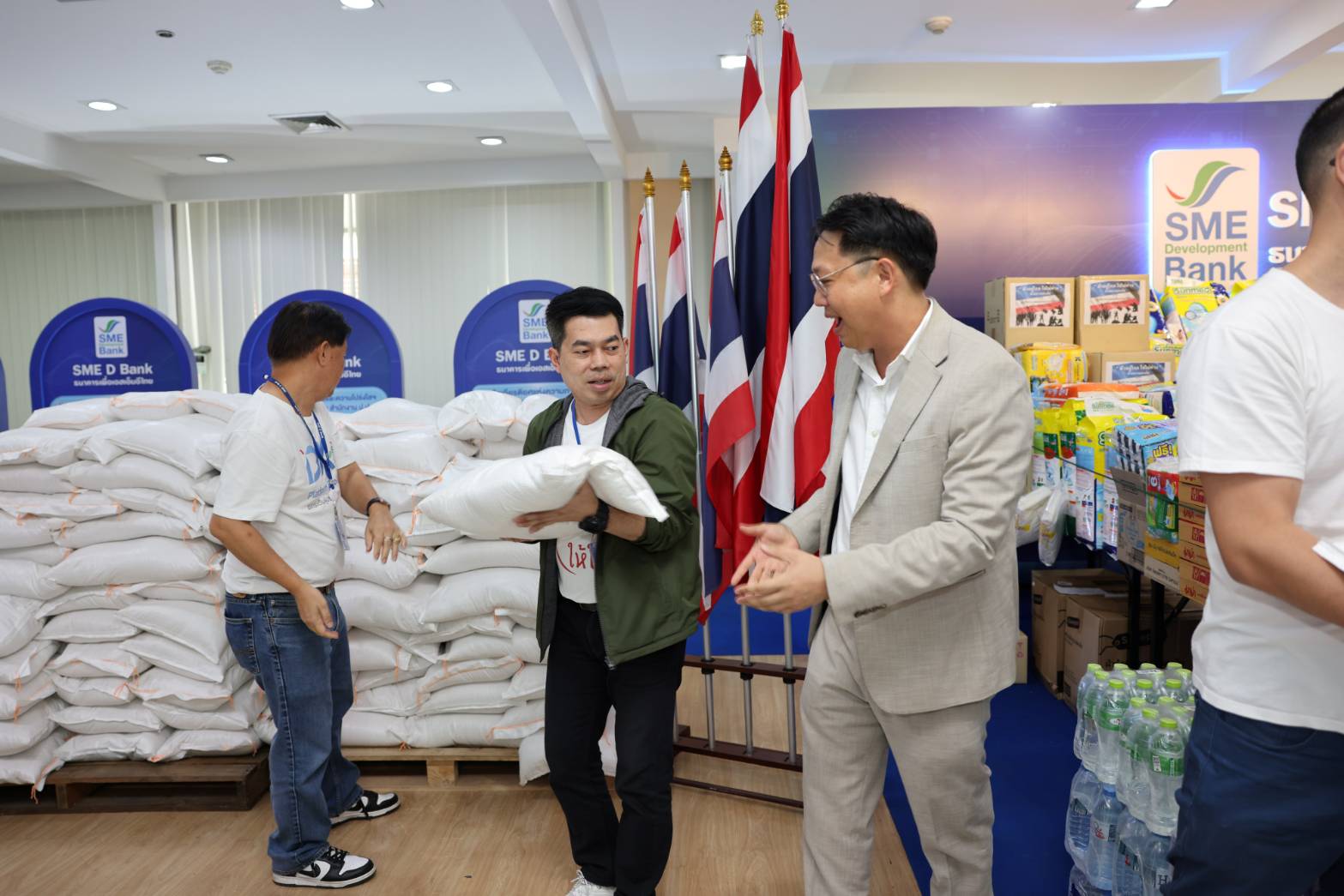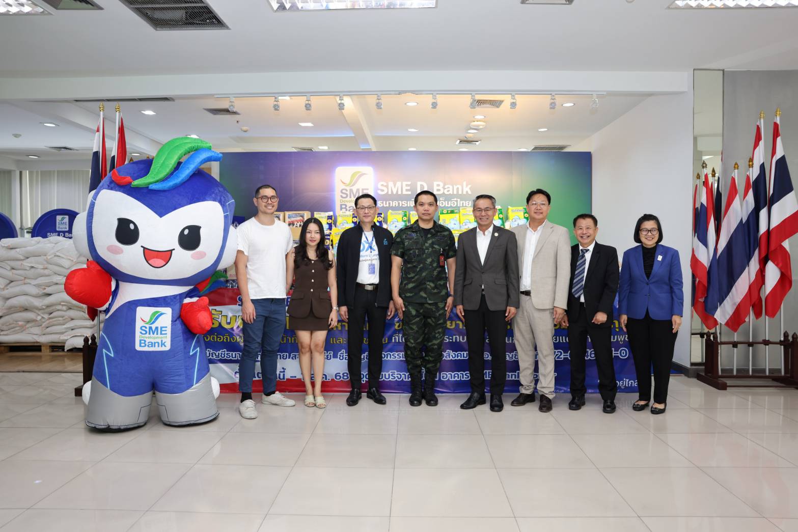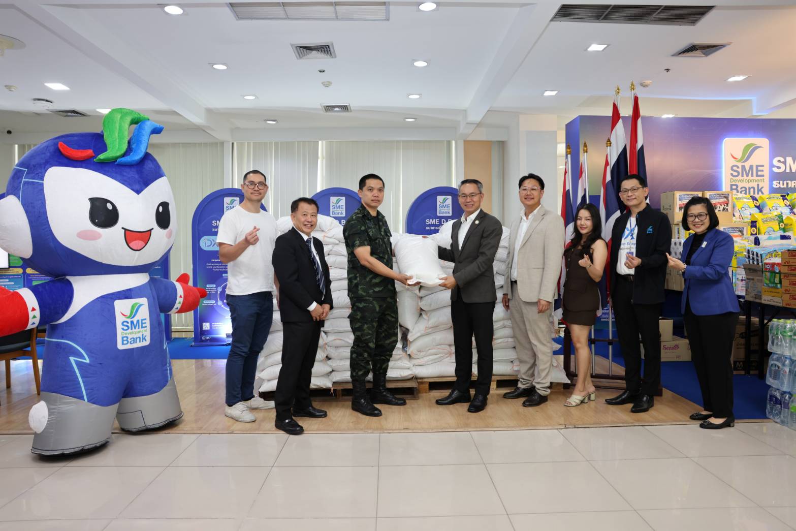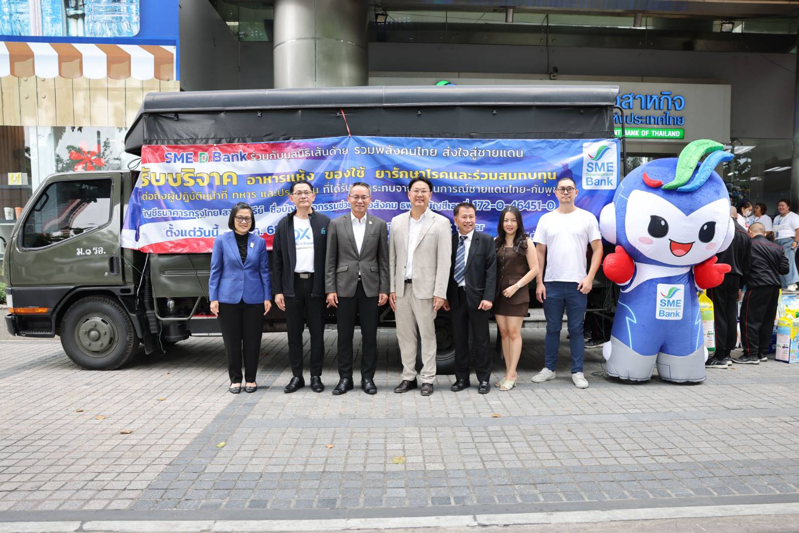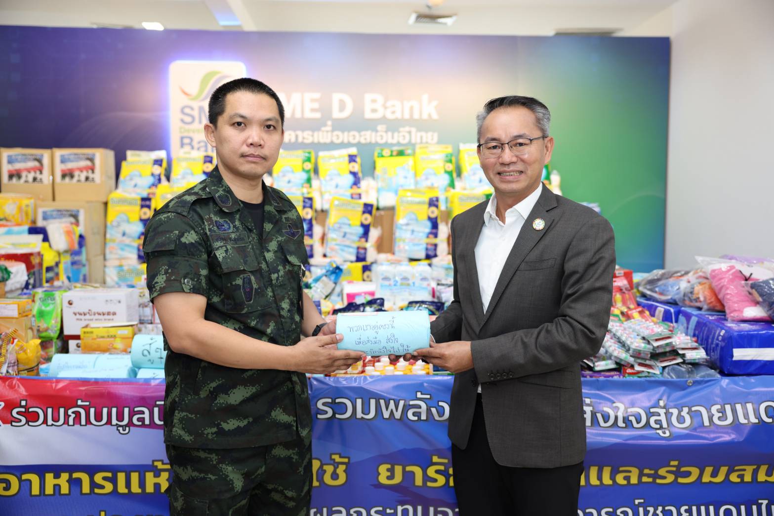 นายพิชิต มิทราวงศ์ กรรมการผู้จัดการ ธนาคารพัฒนาวิสาหกิจขนาดกลางและขนาดย่อมแห่งประเทศไทย (ธพว.) หรือ SME D Bank พร้อมด้วยผู้บริหารและเจ้าหน้าที่ ร่วมส่งมอบอาหารแห้ง ของใช้ ยารักษาโรค และสิ่งของจำเป็นต่าง ๆ ที่ได้รับบริจาคจากผู้บริหาร เจ้าหน้าที่ธนาคาร หน่วยงานพันธมิตร ลูกค้าธนาคาร ผู้ประกอบการเอสเอ็มอี และประชาชน ผ่านกิจกรรม “รวมพลังคนไทย ส่งใจสู่ชายแดน” ซึ่ง SME D Bank จับมือกับ มูลนิธิเส้นด้าย เพื่อนำไปมอบให้แก่ประชาชน ทหาร และผู้ปฏิบัติหน้าที่ ในพื้นที่สถานการณ์ความไม่สงบจากเหตุปะทะตามแนวพื้นที่ชายแดนไทย-กัมพูชา ช่วยบรรเทาความเดือดร้อนและนำไปใช้ในชีวิตประจำวัน โดยมี พ.อ.ณัฐพงษ์ ลมสูงเนิน ผู้อำนวยการกองสารสนเทศ กรมกิจการพลเรือนทหารบก เป็นผู้แทนรับมอบ ในโอกาสเดียวกันนี้ นายพีรพล กนกวลัย สมาชิกสภากรุงเทพมหานคร เขตพญาไท และ นายคริส โปตระนันทน์ ประธานมูลนิธิเส้นด้าย ได้ร่วมส่งมอบด้วย ณ บริเวณชั้น 1 สำนักงานใหญ่ SME D Bank อาคาร SME Bank Tower เมื่อวันที่ 6 ส.ค.68