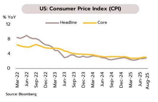 เครื่องชี้ทางเศรษฐกิจและตลาดแรงงานยังคงสะท้อนภาพการชะลอตัวที่ต่อเนื่อง อาทิ การจ้างงานนอกภาคเกษตรที่อ่อนแอ อัตราการว่างงานสูงสุดในรอบเกือบ 4 ปี รวมถึงตำแหน่งงานว่างเปิดใหม่ที่ลดลงต่ำสุดในรอบ 10 เดือน ซึ่งเพิ่มโอกาสเฟดในการปรับลดอัตราดอกเบี้ยเพิ่มเติม โดยวิจัยกรุงศรีคาดว่าอัตราดอกเบี้ยนโยบายมีแนวโน้มลงได้อีก 2-3 ครั้ง (ครั้งละ 0.25%) นับจากการประชุมเดือนกันยายนจนถึงสิ้นปีนี้ แต่ความเร็วในการปรับลดยังขึ้นอยู่กับความเสี่ยงเงินเฟ้อที่มีโอกาสเพิ่มสูงขึ้นจากผลกระทบของนโยบายปรับขึ้นภาษีนำเข้าของรัฐบาลทรัมป์