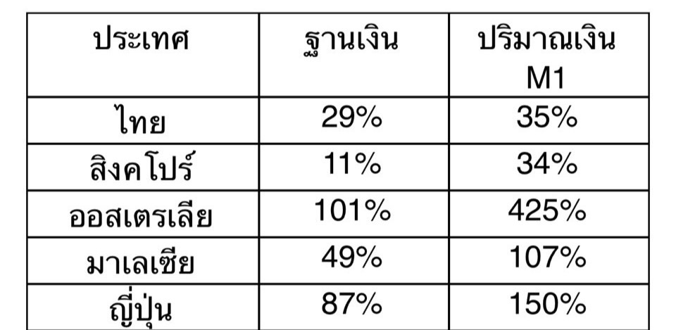 ที่มา : งบการเงินและปริมาณเงิน M1 ของประเทศต่างๆ