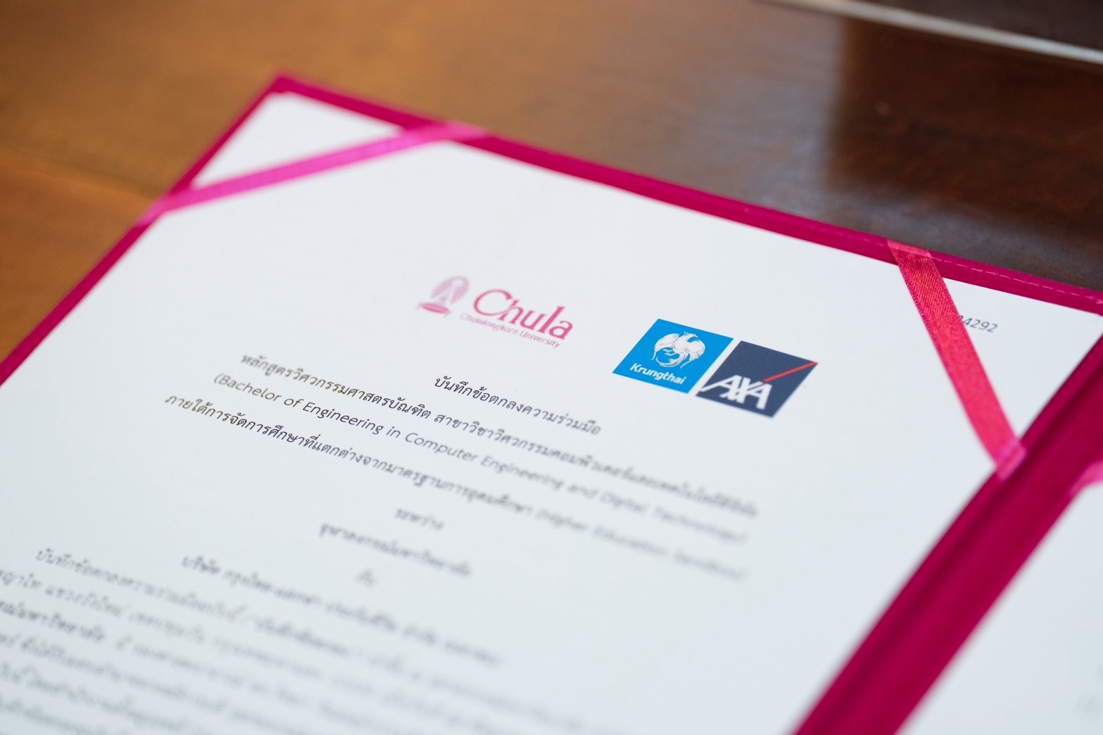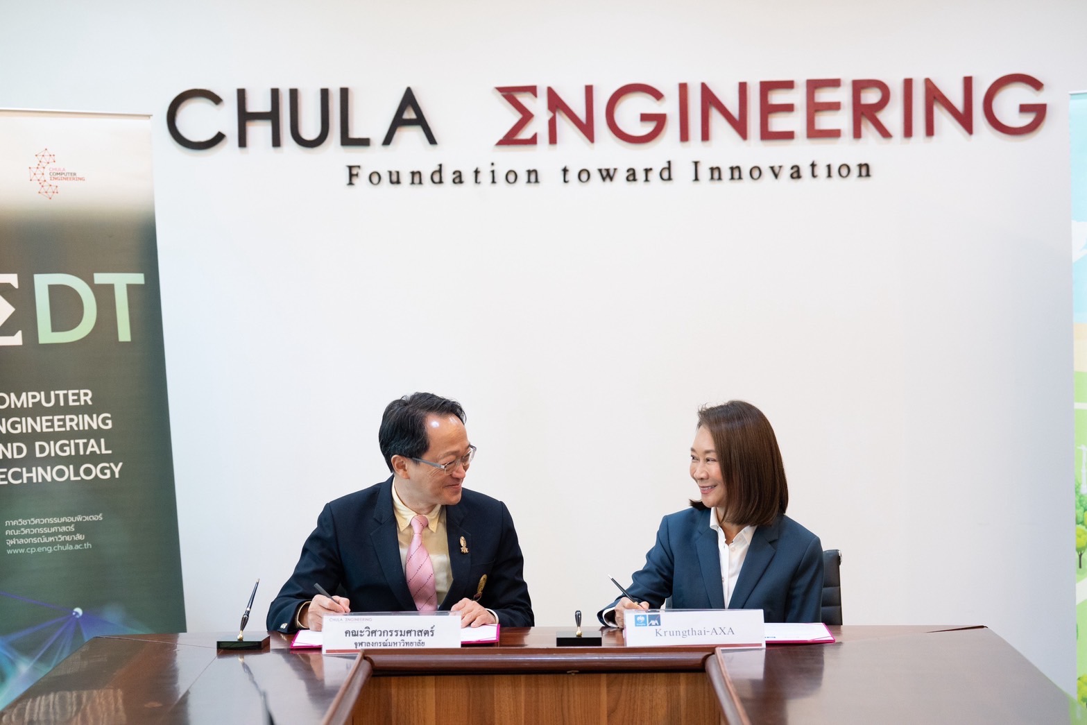 บมจ.กรุงไทย-แอกซ่า ประกันชีวิต ร่วมกับ จุฬาลงกรณ์มหาวิทยาลัย ลงนามบันทึกข้อตกลงความร่วมมือ เพื่อพัฒนาการศึกษาและการเรียนรู้ด้านคอมพิวเตอร์และเทคโนโลยีดิจิทัลที่ยั่งยืน นำโดย คุณสรัสวดี คุปตพงศ์ ประธานเจ้าหน้าที่บริหารฝ่ายทรัพยากรบุคคล กรุงไทย-แอกซ่า ประกันชีวิต (คนขวา) พร้อมด้วย รองศาสตราจารย์ ดร.วิทยา วัณณสุโภประสิทธิ์ คณบดีคณะวิศวกรรมศาสตร์ จุฬาลงกรณ์มหาวิทยาลัย (คนซ้าย) ร่วมลงนามบันทึกข้อตกลงความร่วมมือ เพื่อพัฒนาหลักสูตรวิศวกรรมศาสตรบัณฑิต สาขาวิชาวิศวกรรมคอมพิวเตอร์และเทคโนโลยีดิจิทัล ภายใต้การจัดการศึกษาที่แตกต่างจากมาตรฐานการอุดมศึกษา ซึ่งจัดขึ้นเมื่อวันจันทร์ที่ 22 กันยายน ที่ผ่านมา ณ ห้องสวนรวมใจ 2 จุฬาลงกรณ์มหาวิทยาลัย