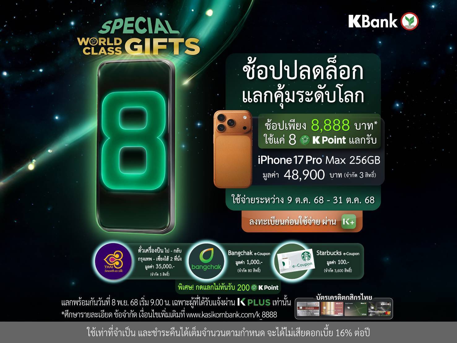 *ศึกษารายละเอียด ข้อจำกัด เงื่อนไขเพิ่มเติมที่ www.kasikornbank.com/k_8888