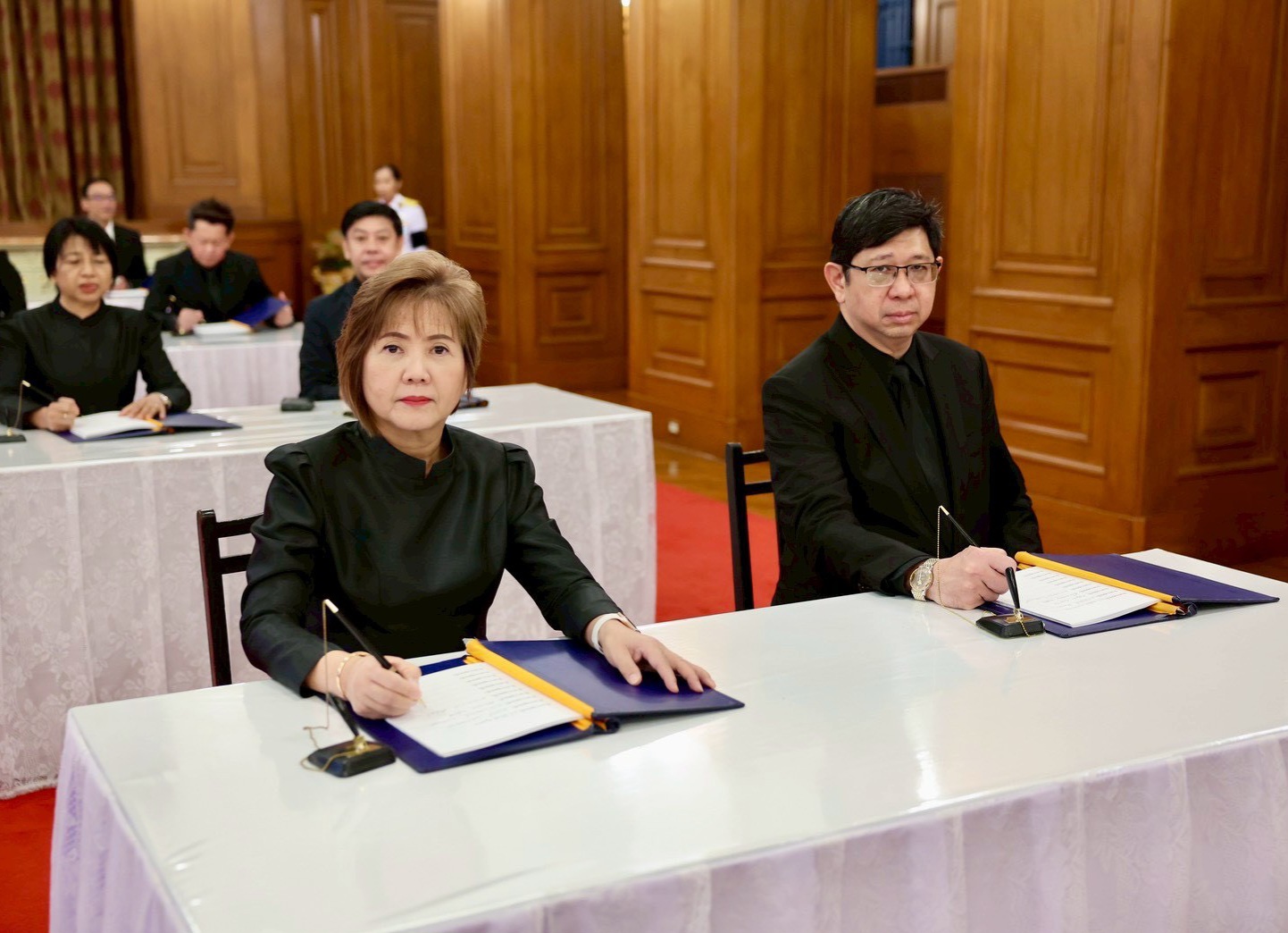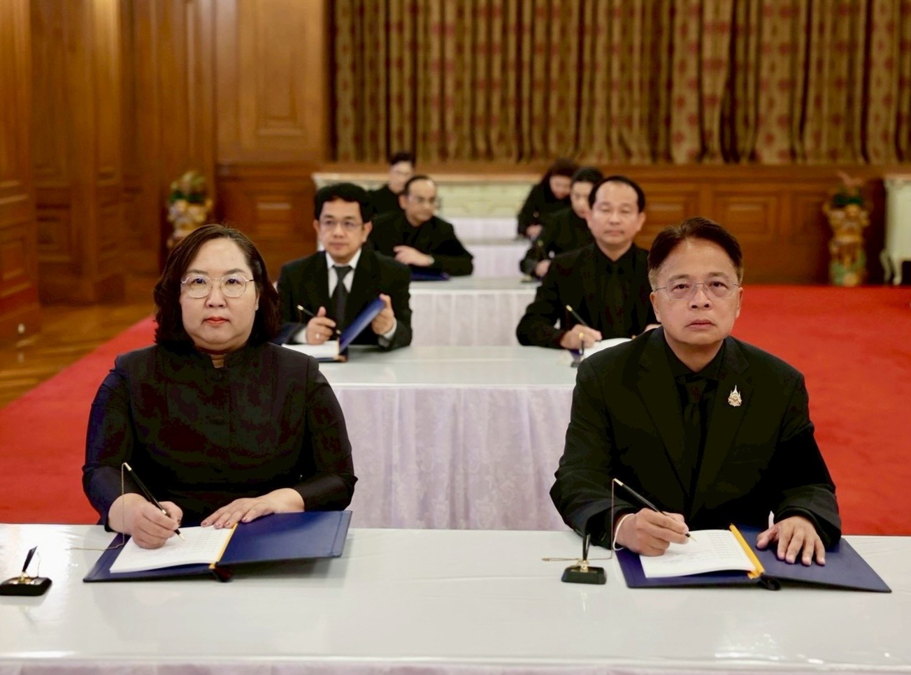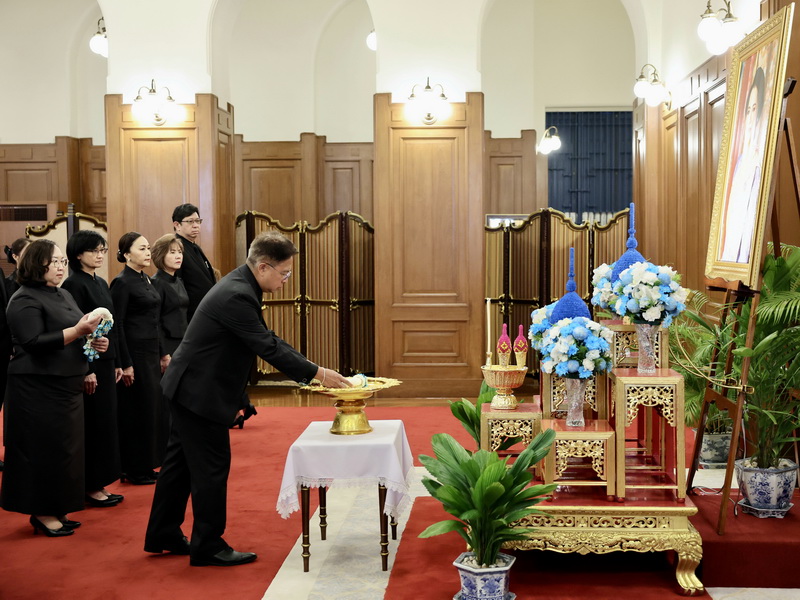 นายธีรัชย์ อัตนวานิช ประธานกรรมการธนาคารออมสิน และ นางลภาวรรณ จันทร์กระจ่าง รองผู้อำนวยการธนาคารออมสิน รักษาการแทนผู้อำนวยการธนาคารออมสิน พร้อมด้วยคณะผู้บริหาร ถวายพวงมาลัย พร้อมลงนามถวายความอาลัย แด่สมเด็จพระนางเจ้าสิริกิติ์ พระบรมราชินีนาถ พระบรมราชชนนีพันปีหลวง เพื่อแสดงความจงรักภักดีและสำนึกในพระมหากรุณาธิคุณอันหาที่สุดมิได้ ที่ทรงปฏิบัติพระราชกรณียกิจนานัปการ เพื่อประโยชน์สุขของพสกนิกรชาวไทย ณ ศาลาสหทัยสมาคม ในพระบรมมหาราชวัง เมื่อวันที่ 4 พฤศจิกายน 2568