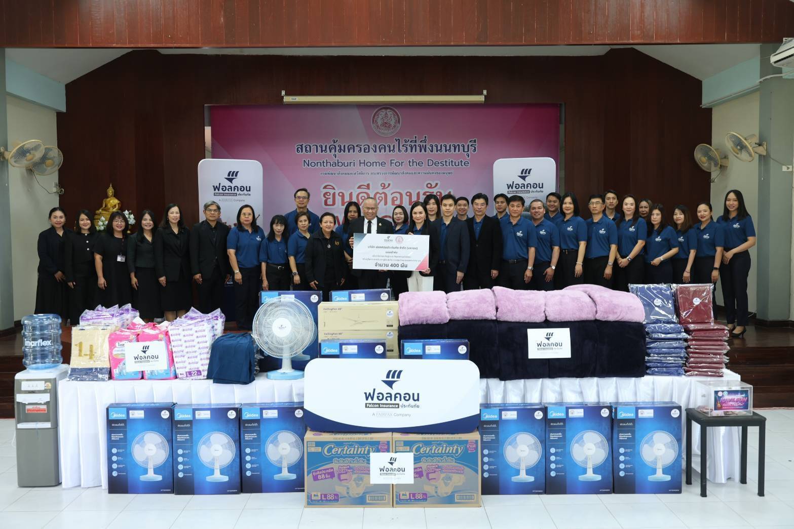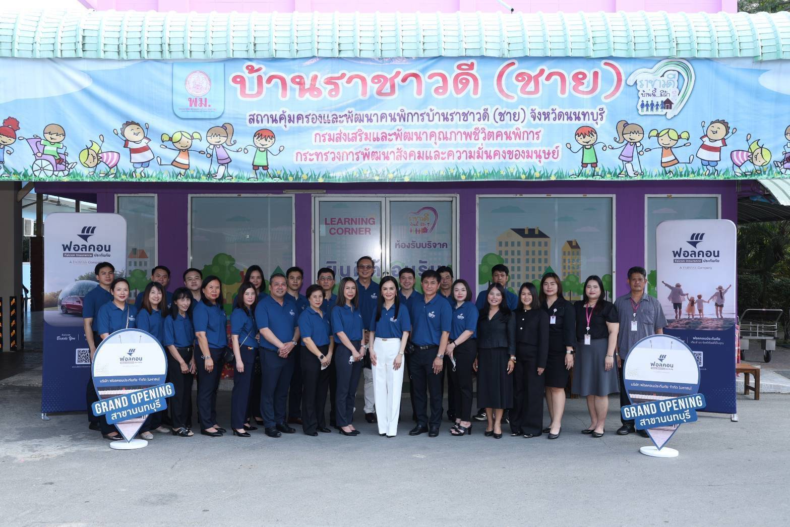ในโอกาสเปิดสาขาใหม่ “นนทบุรี” ฟอลคอนประกันภัยจึงเลือกจัดกิจกรรมเพื่อสังคม ภายใต้แนวคิด “ขยายสาขา ขยายพื้นที่ความห่วงใย” โดยได้รับเกียรติจาก คุณกิตติ อินทรกุล รองปลัดกระทรวงการพัฒนาสังคมและความมั่นคงของมนุษย์ เป็นผู้แทนภาครัฐในการรับมอบสิ่งของในนามกระทรวงฯ แสดงถึงความร่วมมือระหว่างภาคเอกชนและภาครัฐ ในการร่วมกันยกระดับคุณภาพชีวิตของประชาชนกลุ่มเปราะบางอย่างยั่งยืน ทั้งนี้ มีคณะผู้บริหาร พนักงาน และคู่ค้าของฟอลคอนประกันภัย ร่วมมอบสิ่งของจำเป็นให้แก่สถานคุ้มครองคนไร้ที่พึ่ง รวมถึงยังได้มีการเลี้ยงอาหารกลางวันให้กับเด็ก ๆ ที่ บ้านราชาวดี (ชาย) จังหวัดนนทบุรี สะท้อนความตั้งใจในการเติบโตอย่างสมดุล ทั้งด้านธุรกิจและการสร้างคุณค่าคืนสู่สังคม