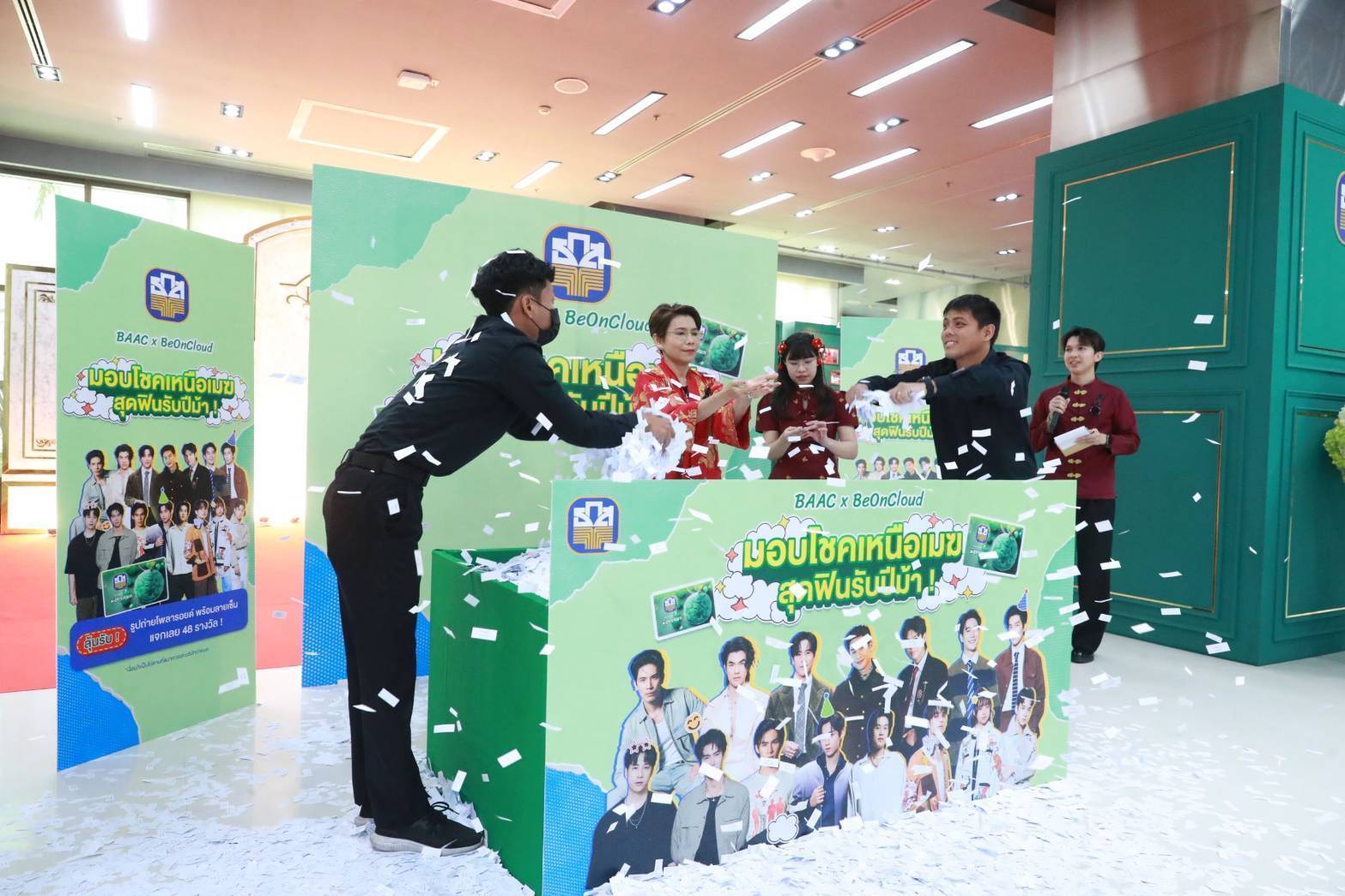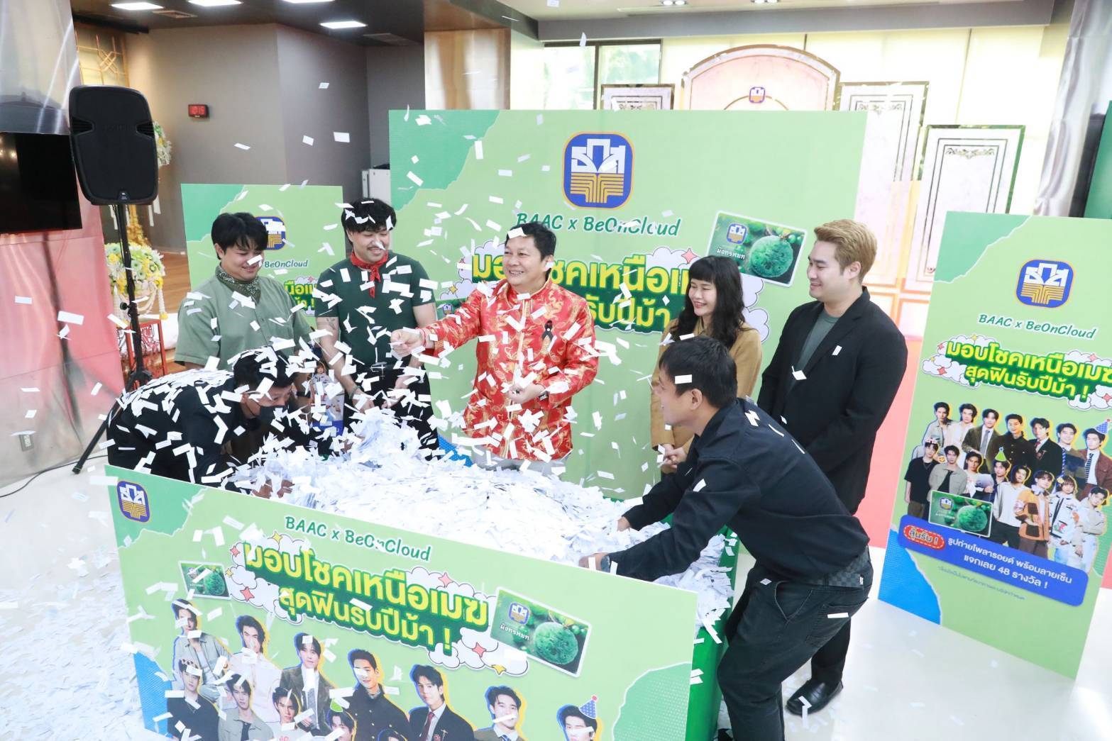 นายไพศาล หงษ์ทอง รองผู้จัดการธนาคารเพื่อการเกษตรและสหกรณ์การเกษตร (ธ.ก.ส.) เป็นประธานในการจับรางวัลแจกภาพถ่ายโพราลอยด์ของศิลปิน ในสังกัด Be On Cloud ให้แก่ลูกค้าที่ฝากสลากออมทรัพย์ ธ.ก.ส. ชุดมังกรหยก ในกิจกรรม “มังกรหยกมอบโชคเหนือเมฆ สุดฟินรับปีม้า” จำนวน 48 รางวัล ซึ่งเปิดให้เข้าร่วมกิจกรรมตั้งแต่วันที่ 10 – 31 มกราคม 2569 ที่ผ่านมา โดยกิจกรรมดังกล่าวได้รับเสียงตอบรับเป็นอย่างดีจากแฟนคลับของศิลปินค่าย Be On Cloud และลูกค้าทั่วไป ทำให้มียอดผู้เข้าร่วมกิจกรรม จำนวน 1,236 ราย และมีจำนวนสิทธิ์ที่ลงทะเบียน ลุ้นรางวัลจำนวนกว่า 1.1 ล้านสิทธิ์ โดย ธ.ก.ส. จะมีการประกาศรายชื่อผู้โชคดีทาง LINE Official Account BAAC Family (@baacfamily) และ Facebook : ธกส BAAC Thailand ในวันที่ 18 กุมภาพันธ์ 2569 ต่อไป