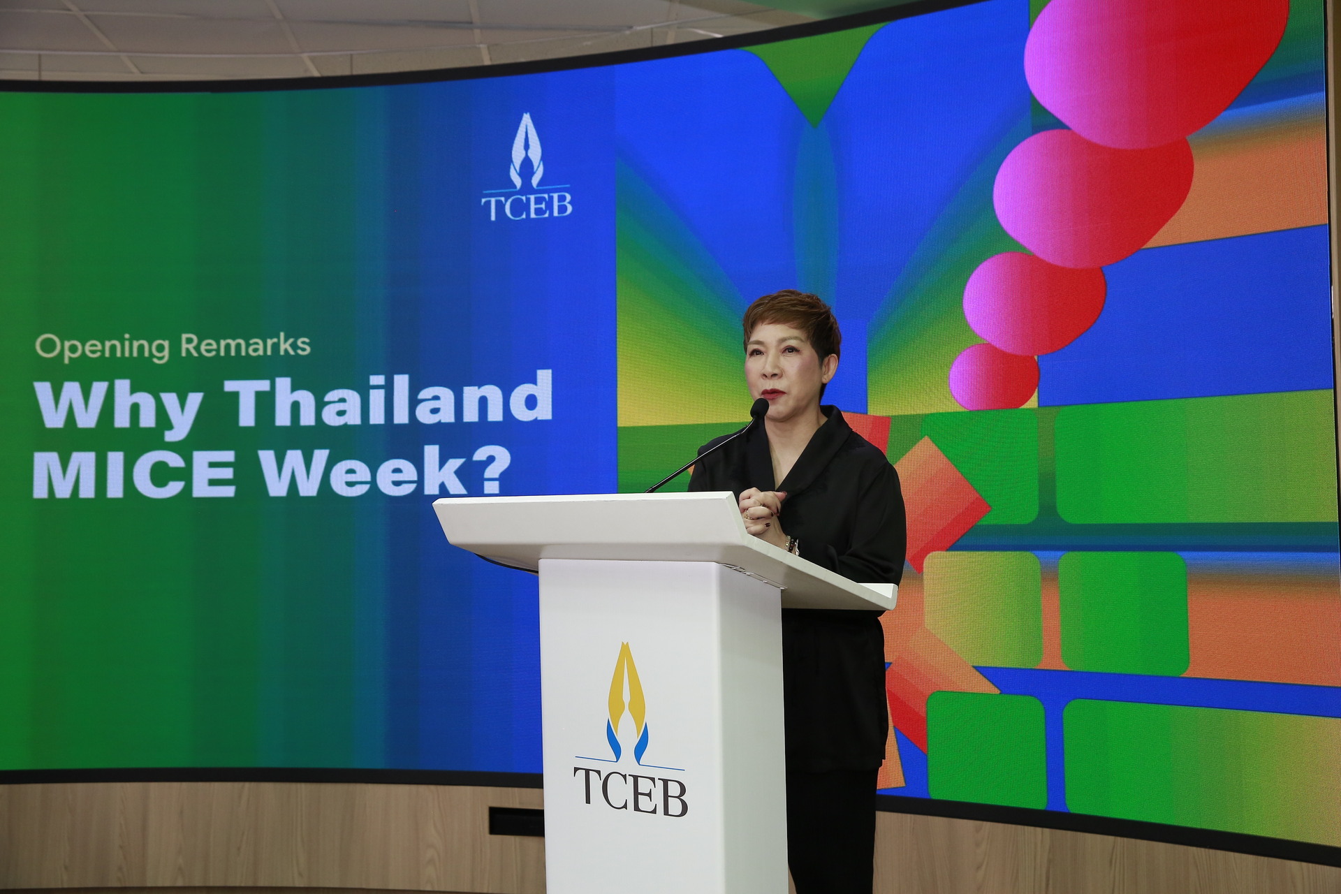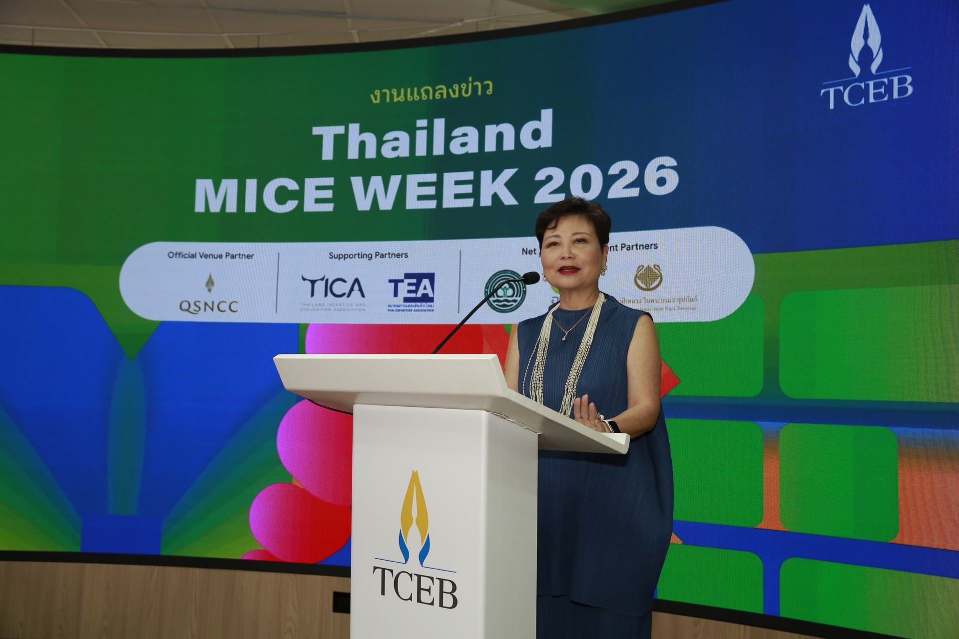 ดร. ศุภวรรณ ตีระรัตน์ ผู้อำนวยการสำนักงานส่งเสริมการจัดประชุมและนิทรรศการ (องค์การมหาชน) หรือ ทีเส็บ เปิดเผยว่า สถานการณ์ความท้าทายและพัฒนาการใหม่ๆ ระดับโลกเป็นโจทย์ใหญ่ของทุกภาคธุรกิจ อุตสาหกรรมไมซ์ไทยจึงต้องเร่งดึงดูดผู้มีส่วนได้เสียทุกฝ่ายในห่วงโซ่อุตสาหกรรมไมซ์ให้มารวมตัวประสานความร่วมมือภายในแพลตฟอร์มเดียว เพื่อให้เกิดพลังแบบทวีคูณสำหรับขับเคลื่อนการพัฒนาที่สามารถครอบคลุมทุกมิติสำคัญของอุตสาหกรรมไมซ์ไทย ทีเส็บในฐานะองค์กรภาครัฐที่ขับเคลื่อนอุตสาหกรรมไมซ์จึงตัดสินใจยกระดับงาน MICE Day ที่เดิมจัดระยะ 1 วันต่อเนื่องมา 5 ปีเป็นงาน Thailand MICE Week 2026 ระยะเวลา 3 วัน เริ่มต้นในปีนี้ วันที่ 28–30 เมษายน 2569 ณ ศูนย์การประชุมแห่งชาติสิริกิติ์ โดยร่วมมือกับพันธมิตรภาคเอกชน คือ สมาคมการแสดงสินค้า (ไทย) หรือ Thai Exhibition Association (TEA) และสมาคมส่งเสริมการประชุมนานาชาติ (ไทย) หรือ Thailand Incentive and Convention Association (TICA) ในการขับเคลื่อนงาน สาระสำคัญของการยกระดับงานคือทีเส็บดึงงานขับเคลื่อนอุตสาหกรรมไมซ์ที่เคยจัดแบบแยกส่วนตามกลุ่มเป้าหมายที่แตกต่างกัน เช่น MICE Standards Day, MICE Academy Day, และ MICE City Summit ให้มาจัดในคราวเดียวกัน ในส่วนของภาคเอกชน TEA ได้นำงานประจำปี Thailand MICE X-Change หรือ TMX มาร่วมจัดกับงานของทีเส็บ ภายใต้ร่มธง Thailand MICE Week 2026 หรือเป็นการดึงการพัฒนาอุตสาหกรรมไมซ์ในทุกองคาพยพมารวมไว้ในแพลตฟอร์มเดียว เพื่อให้ผู้มีส่วนได้เสียในทุกฝ่ายมารวมตัวแลกเปลี่ยนเรียนรู้สร้างแรงบันดาลใจจับมือขับเคลื่อนการพัฒนาอุตสาหกรรมไมซ์ไทยให้มีพลังและก้าวไปในทิศทางเดียวกัน