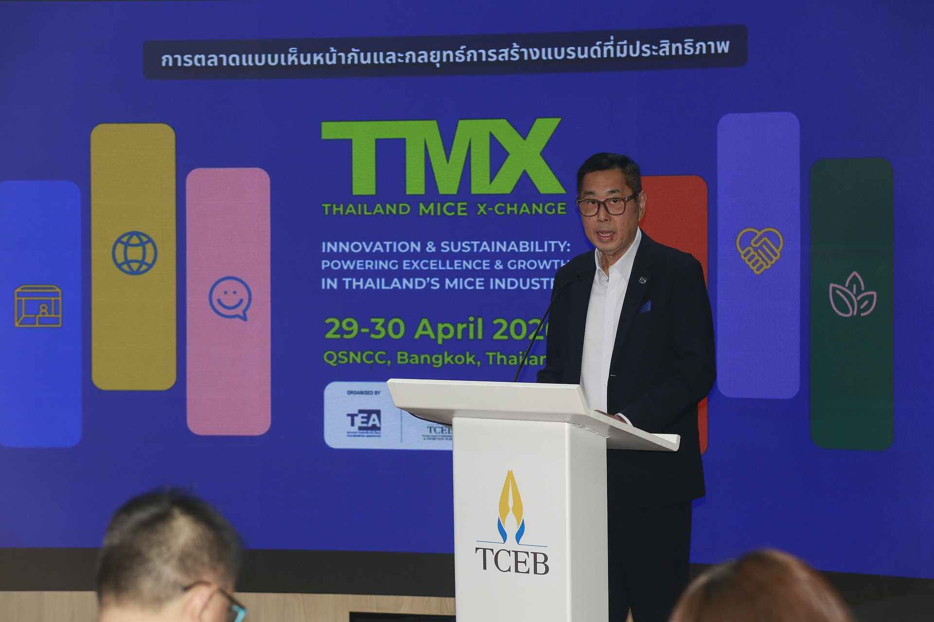 นายลอย จุน ฮาว นายกสมาคมการแสดงสินค้า (ไทย) และ ประธานจัดงาน Thailand MICE X-Change 2026 กล่าวถึงความร่วมมือการจัดงานในครั้งนี้ ว่า “TMX 2026 จัดร่วมกับ Thailand MICE Week ของทีเส็บทำให้งาน TMX 2026 ไม่ได้เป็นเพียงงานที่รวมตัวผู้เชี่ยวชาญและผู้ที่เกี่ยวข้องในธุรกิจการจัดงานการประชุมและอีเวนต์ประจำปีเท่านั้น แต่ยังเป็นงานที่เชื่อมโยงความร่วมมือระหว่างภาครัฐและเอกชนที่ได้มาพบปะกันแบบตัวต่อตัว สะท้อนถึงความมุ่งมั่นในการยกระดับและเตรียมความพร้อมให้ธุรกิจการจัดงานแสดงสินค้า งานประชุมและอีเวนต์ของประเทศไทยก้าวสู่อนาคตอย่างยั่งยืนร่วมกัน ด้วยการให้ความสำคัญกับนวัตกรรมดิจิทัล ความยั่งยืน และความร่วมมือในระดับสากล เรากำลังสร้างบทบาทของประเทศไทยให้เป็นหนึ่งในศูนย์กลางด้านการจัดงานแสดงสินค้า งานประชุมและอีเวนต์ที่มีความแข็งแกร่งและมีศักยภาพสูงที่สุดในเอเชีย พร้อมขับเคลื่อนการลงทุน การค้า และการเติบโตทางธุรกิจที่ยั่งยืนในระดับภูมิภาค”