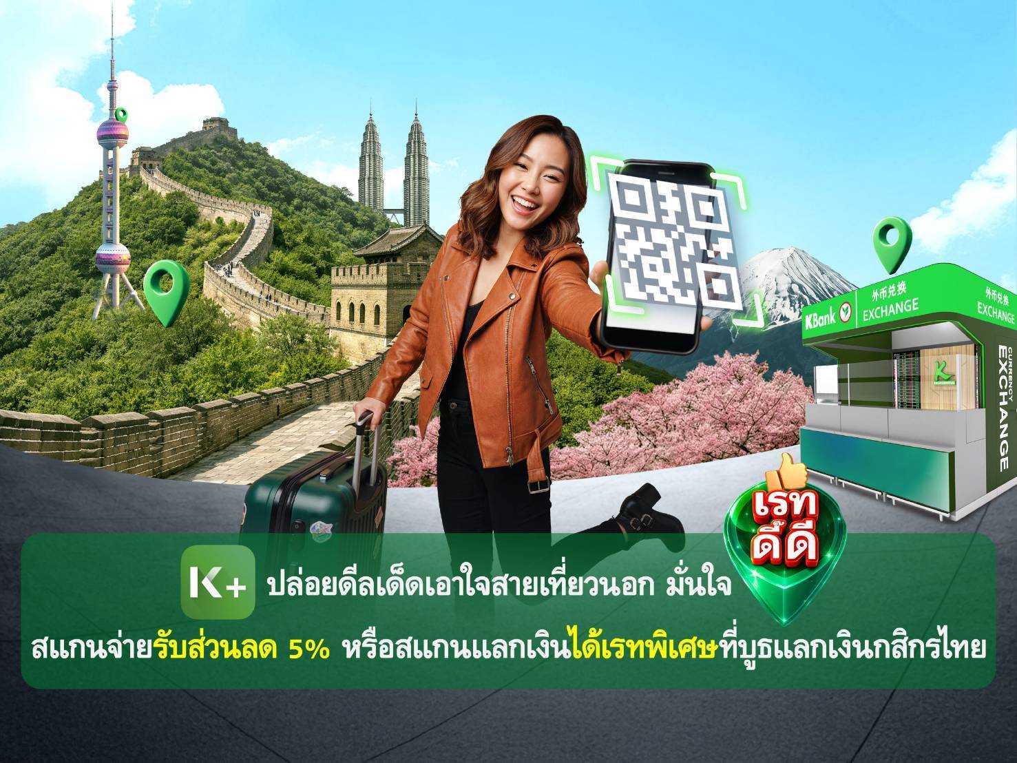 K PLUS ปล่อยดีลเด็ดเอาใจสายเที่ยวนอก มั่นใจเรทดี๊ดี สแกนจ่ายรับส่วนลด 5% หรือสแกนแลกเงินได้เรทพิเศษที่บูธแลกเงินกสิกรไทย
